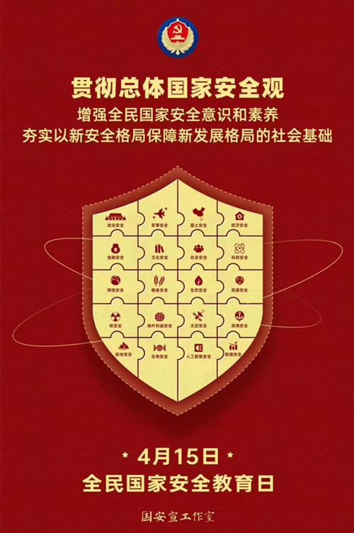 2023年4月15日是第八個全民國家安全教育日。活動主題為:“貫徹總體國家安全觀,增強(qiáng)全民國家安全意識和素養(yǎng),夯實(shí)以新安全格局保障新發(fā)展格局的社會基礎(chǔ)。”
