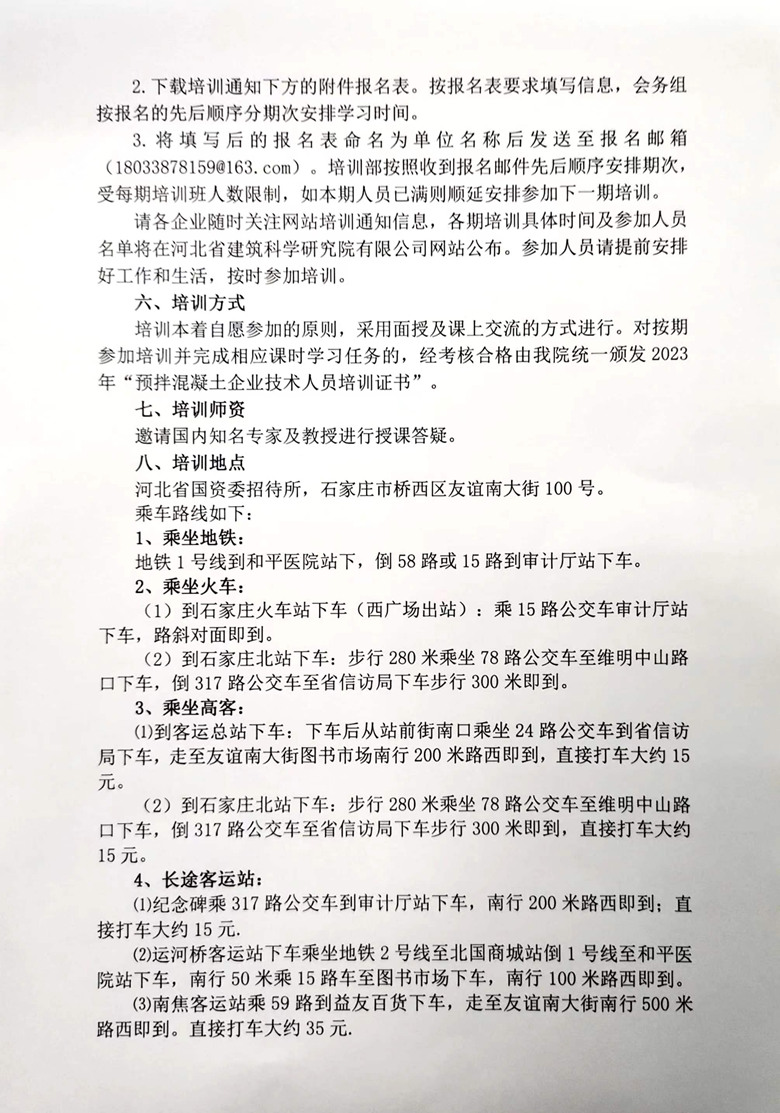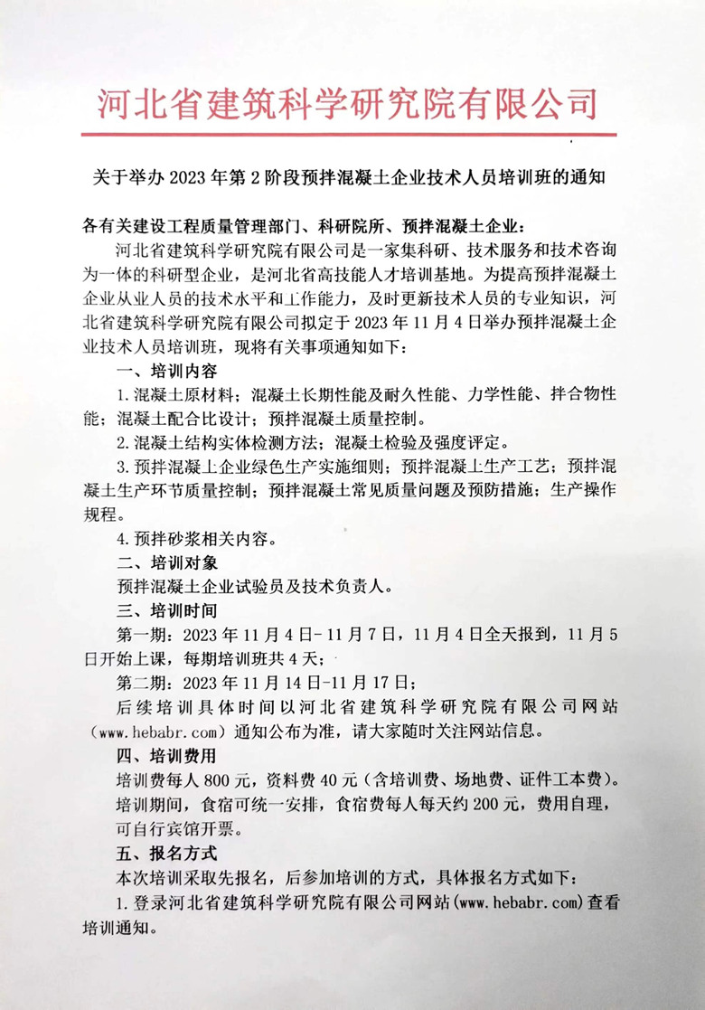 關于舉辦2023年第2階段預拌混凝土企業技術人員培訓班的通知